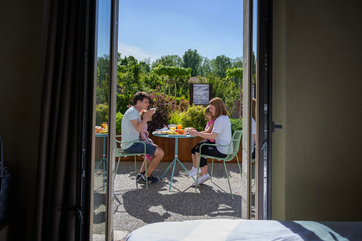 Al primo piano della vecchia stazione del treno, recuperata seguendo i dettami della bioedilizia e con un attento studio del comfort acustico, le nostre Camere Family sapranno stupirti. Gli arredi su misura seguono linee moderne e offrono comfort reinterpretando il fascino di un luogo storico. Nel soppalco troverai il secondo letto e l’amaca elastica che risveglierà il divertimento dei bambini di tutte le età! Al mattino raggiungici per la prima colazione con tanti prodotti a Km0.
