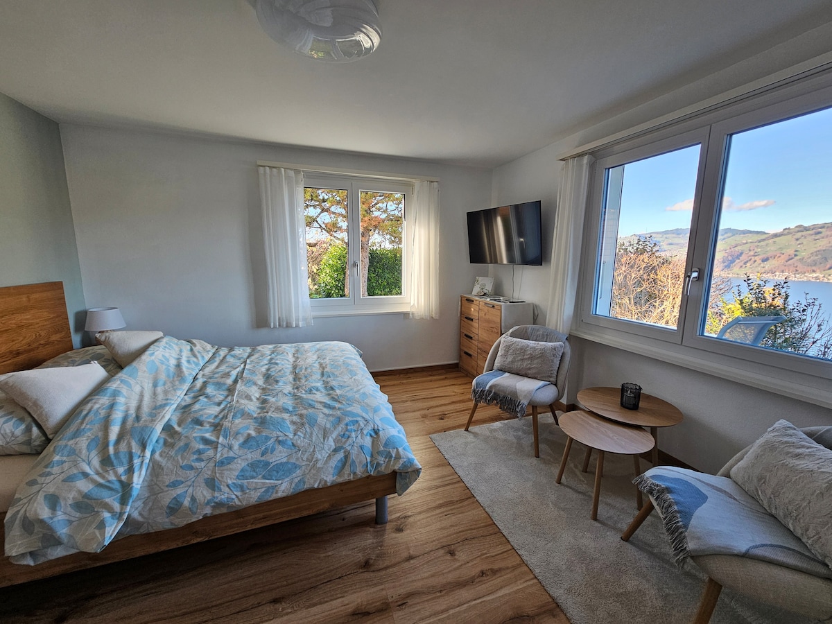 Am Sonnenhang direkt beim Waldrand befindet sich eine exzeptionelle Bauhaus Villa «The Horizon» mit grossem, gepflegtem Garten – ein Juwel eleganter, moderner Architektur der 60-er Jahre. Sensationelle Aussicht über die malerische Landschaft bis hin zu dem Gipfelpanorama der Alpen. Ruhe, Erholung sowie Sportmöglichkeiten garantiert. Ausgestattet mit hochwertigen, exklusiven Design Klassikern. Ein Déjà-Vu der Original End 60-er Jahre. Ein Muss für alle Design- und Architektur Liebhaber.