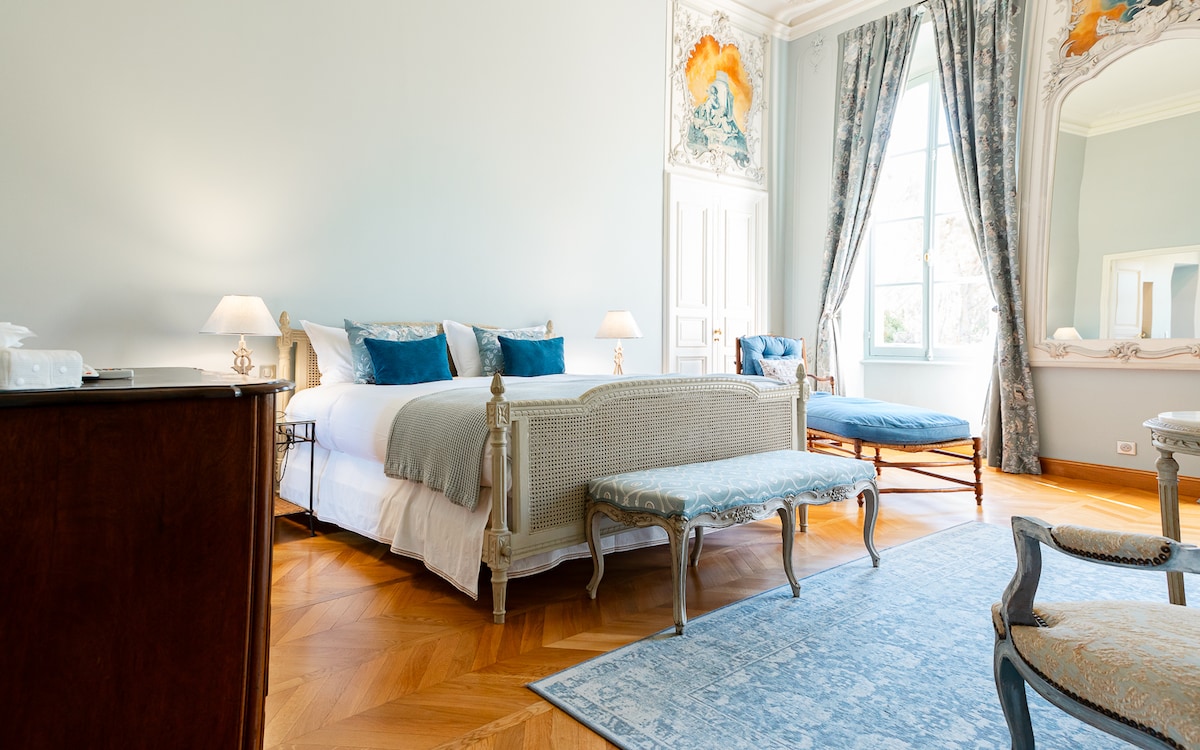 Profitez du luxe exceptionnel de ce logement unique avec notre Suite Napoléon et une vue imprenable sur La Loire. Pour une ou plusieurs nuits, venez apprécier l'architecture et la grandeur de cette chambre. Elle se situe au 1er étage de l'hôtel 4 étoiles Chateau Le Prieuré - La Maison Younan.