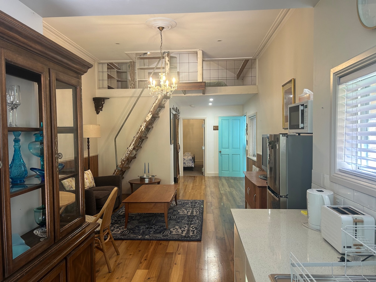 Built c 1854 as a coaching station, an addition was built in c1876 - this section is now available for guests. The apartment sleeps up to 4 adults with a queen sized bed in a separate bedroom, as well as a very comfortable queen sized sofa bed in the huge lounge area. There is a fully equipped kitchen also full separate laundry. There is an electric 'log fire' heater as well as split systems in both the lounge and bedroom. Free wifi and built-in USB charger.