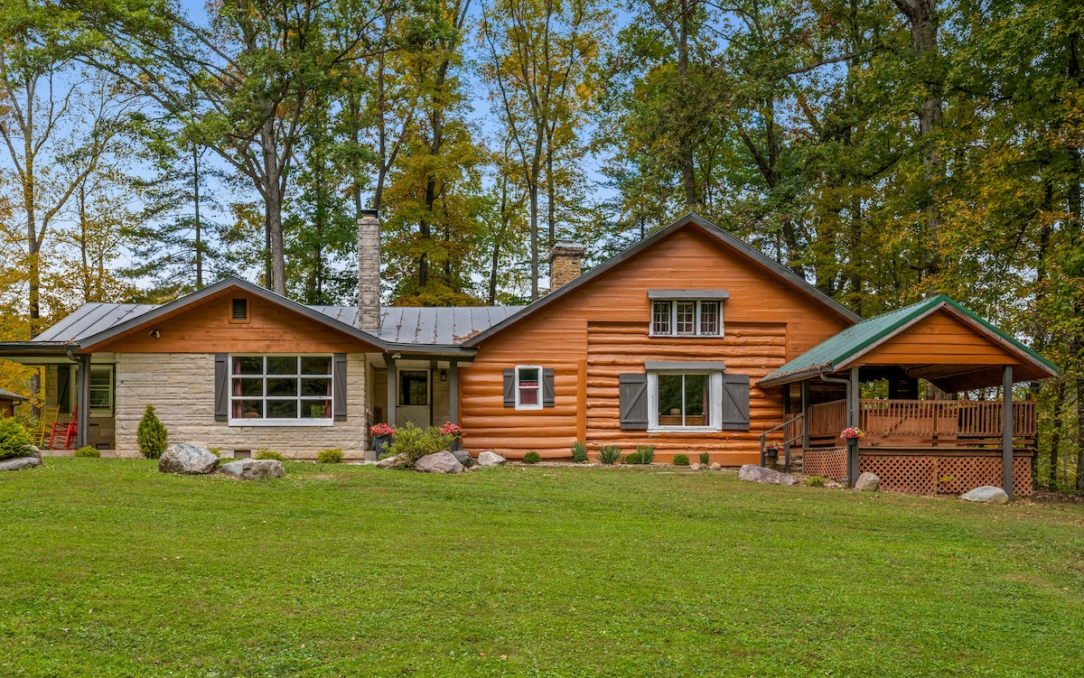 Boulders Lodge is a large family vacation home in Brown County (Nashville area), IN. The home sleeps up to 10 overnight guests. This private country setting is ideal for family gatherings, reunions or groups. Spacious great rooms, queen sized bedrooms, hot tub, fireplaces, pool table, large baths, kitchens and outdoor gathering areas. Secluded and surrounded by 15 beautiful acres to explore and hike. Conveniently located to shopping, dining and entertainment in Nashville, IN and state parks.