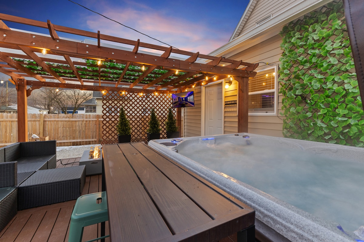 Located in a premier location, just blocks from the main drag of Fountain Square and 7 minutes from the city center, sits our spa oasis stay! You'll be surrounded by Indy's best restaurants and nightlife while enjoying the zen tranquility of our home. Plunge into the private hot tub to take in the stars, lounge on the deck in the heat of the sun or take it up a level and sweat it out in our Far Infrared sauna.