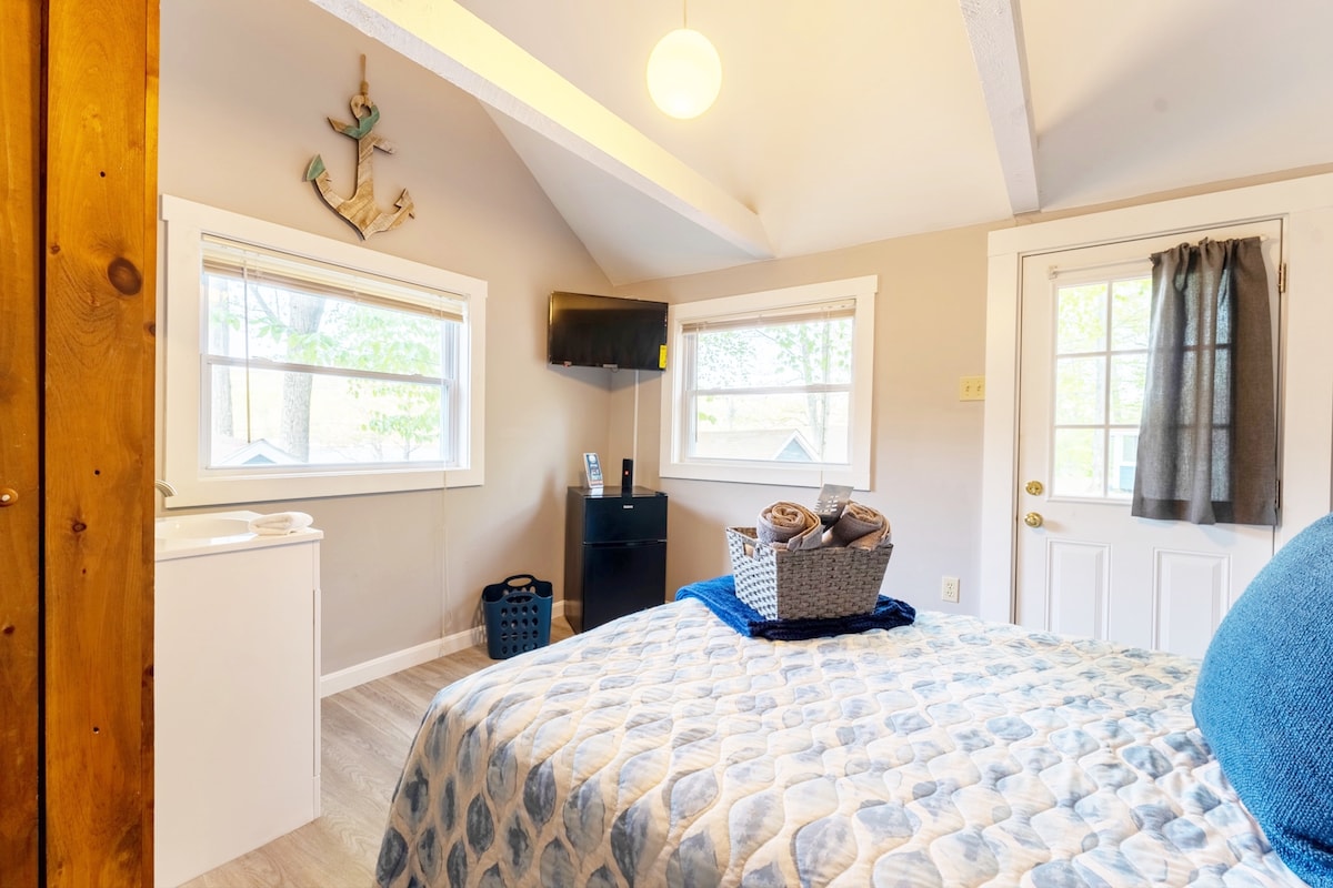 This beautiful cabin features a queen bed in the bedroom, a double futon in the living room & can accommodate up to 4 people. The cottage includes a fully equipped kitchenette with microwave, mini-fridge, coffee maker, toaster & dining area. Smart TV, WIFI. AC & Central heating. A private full bath with tub/shower combo included at this unique and tranquil getaway. Enjoy the privacy of your own seaside cottage close to the beach! BBQ grills and picnic tables with umbrellas dot the outdoor area.