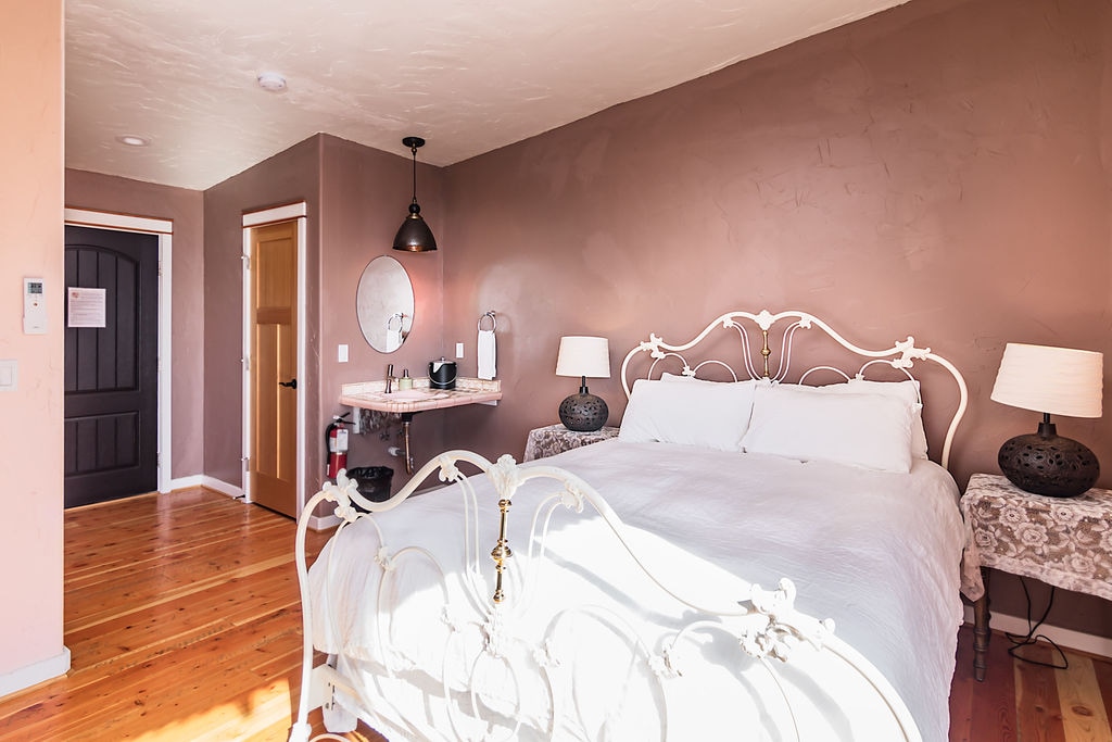 Built in 1861, The Jacksonville Inn is an iconic historic landmark located in the heart of downtown. This 8-room boutique hotel has been recently renovated with a fresh look while honoring its rich past. Once named the "most romantic" hotel in Oregon, The Jacksonville Inn is a haven for visitors to Applegate Valley Wine Country and the prestigious Britt Festival. This king bed suite offers a luxurious copper soaking tub, walk-in shower, smart TV, and Nespresso coffee. Walk to Britt Festival.