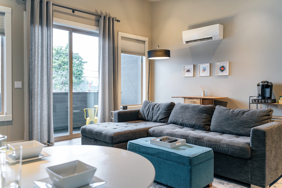 Less than a mile to UofO! Stylish designer loft style home. Downtown Eugene location steps from local food, cafe's, nightlife, shopping. 1 Bedroom w/desk workspace, plus a sleeper couch in the living area. Laundry room. Urban luxury w/the conveniences of home. Super fast wi-fi, Blackout shades, Air Conditioning, all kitchen appliances, 2 TV's, Keurig coffee maker, large private 2nd story deck/balcony & 1 dedicated parking spot at the front door. 1.5 miles to HAYWARD & 1.4mile to RiverFront Park.