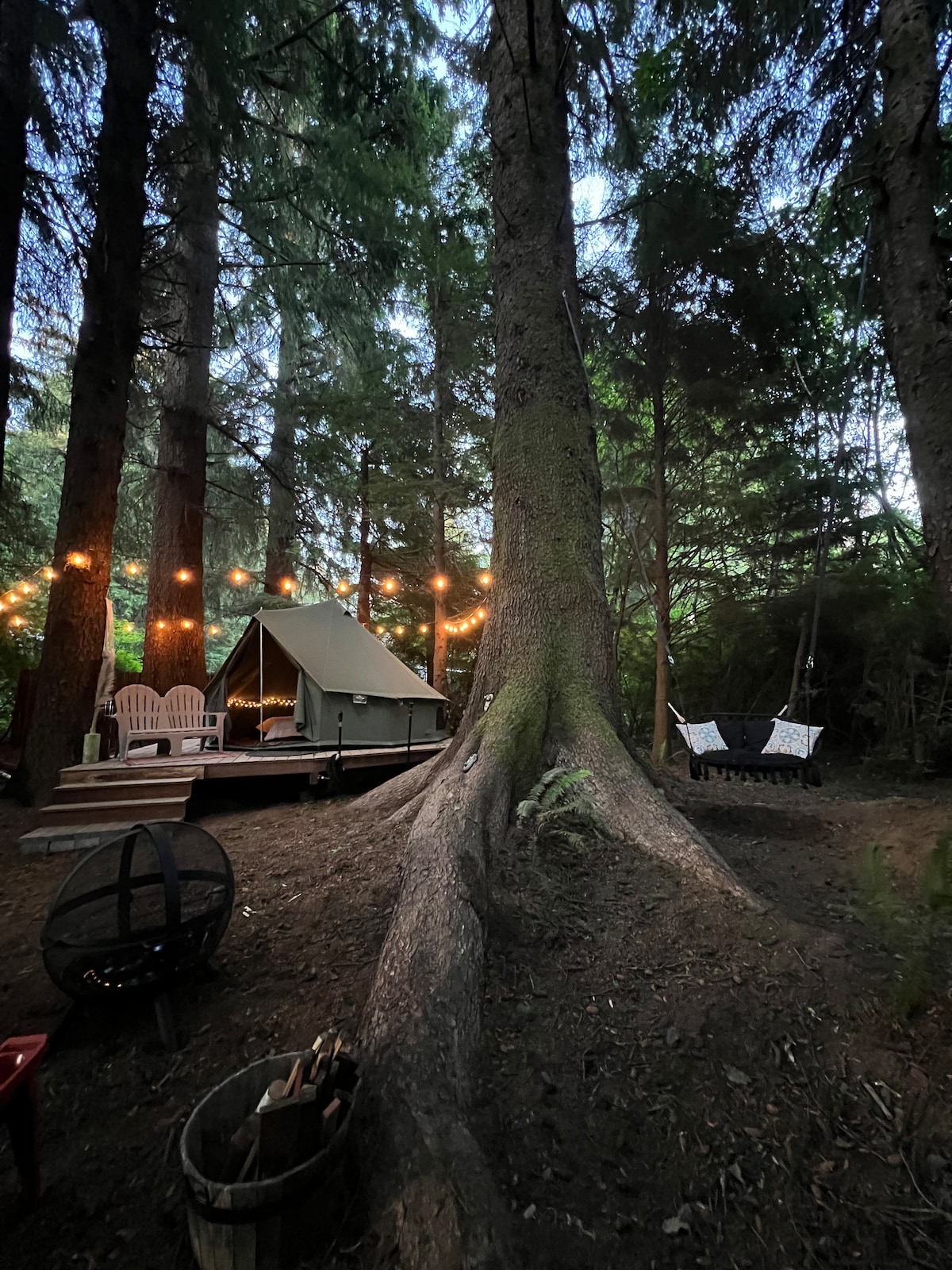 Welcome to our enchanting glamping site, minutes away from the majestic redwood national forests. Here, nature and luxury harmoniously blend to offer you an unforgettable outdoor experience. One of our unique features is a vintage horse trailer that has been converted into a charming bathhouse. Surrounded by towering ancient trees and nature, our site provides a perfect escape. Our glamping accommodations offer all the comforts of home while immersing you in the serene beauty of the redwoods.