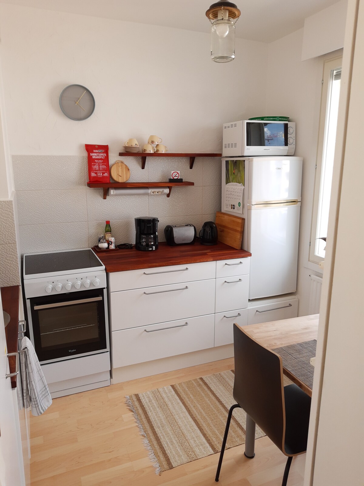 Enjoy stylish accommodation in the heart of Tampere, in an almost 100-year-old building! The completely modern 40m2 apartment breathes history with small details: wide window sills, original doors and thick walls. A stylish glass wall separates the bedroom. The modern kitchen has all the necessary appliances, including an espresso machine. Coffee and tea are complimentary! The apartment is located in the centre, next to Nokia Arena and Ratina shopping center. Welcome!