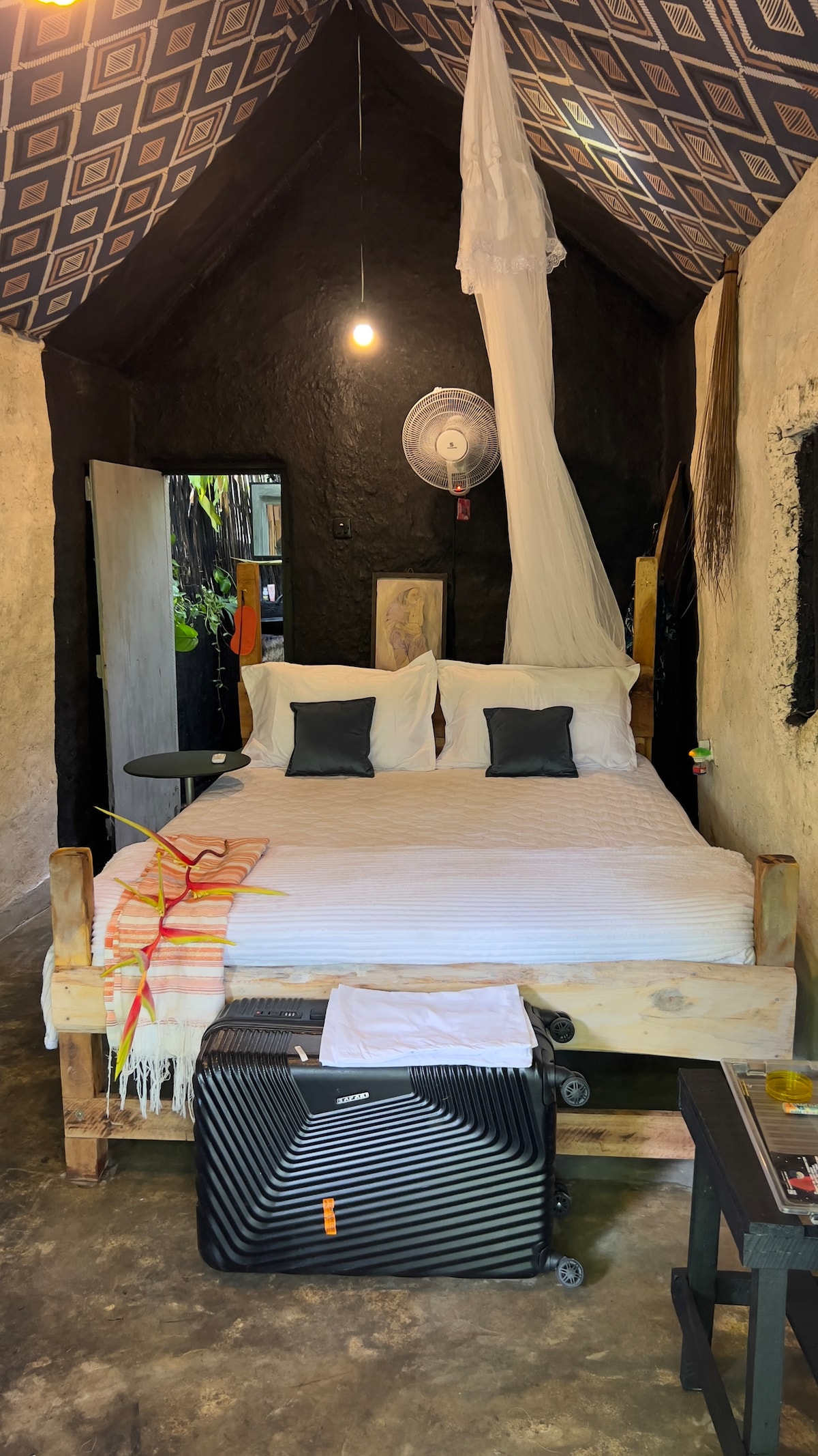 Soul Wood Cabana offers a one-of-a-kind, nature-inspired retreat crafted entirely from natural wood, delivering an immersive, rustic experience. The open bathroom adds a unique twist, where mango and cashew trees grow within the space, blending indoor comforts with the outdoors and creating an enchanting ambiance. Soul Wood Cabana provides guests with a rare chance to connect with nature while enjoying a serene, beautifully designed space.
