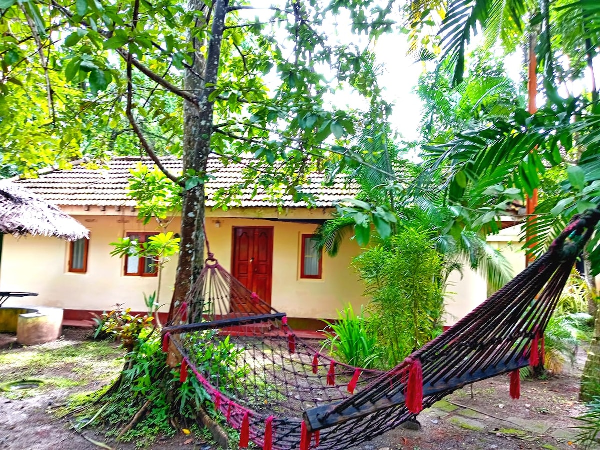 The Chalet is a luxury 2 bedroom private villa, ideal for families & couples. Sleeps 4 to 6 pax. The quaint house is beautifully restored and has the charm of a 100 year old heritage house. One minute walk to the beach ( across the road). If any of our 3 beach villas are not occupied, Chalet visitors can spend the day at the beach villas - NO extra charge. The chalet has a boundary wall around and is private. Fast WIFI available. The villa can be taken with or with out staff