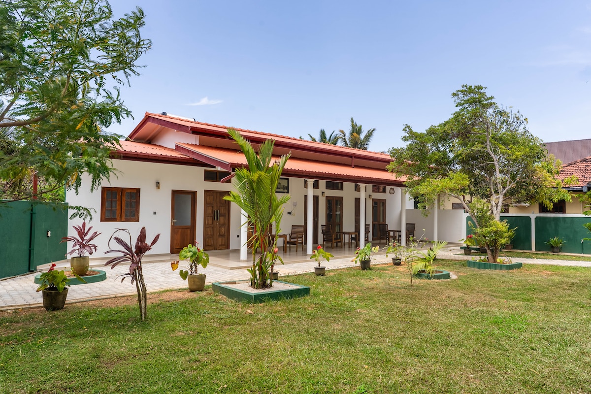 A cozy villa in Ahangama surrounded by tropical greenery, just minutes from sandy beaches and surf spots. Perfect for couples, families, and friends seeking comfort and relaxation. • Spacious rooms & shaded veranda • Peaceful garden setting • Short ride to the beach • Ideal for a relaxing getaway on Sri Lanka’s south coast