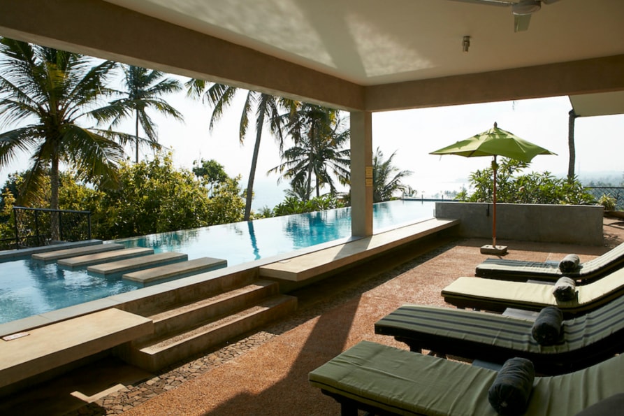 The Palm Lanka is a peaceful, unique and luxury villa near Tangalle.Featuring four ensuite bedrooms, rooftop terrace, yoga and fitness studio, cold plunge, open garden kitchen/bar and swimming pool overlooking lush palmtree garden. Relax in a new villa, bright room with balcony and private bathrooms. Every day we get visits from colourful birds, monkeys and you can even hear peacocks singing. We have the best team: Manel and Suresh who will take care of all your needs and also nightly security.
