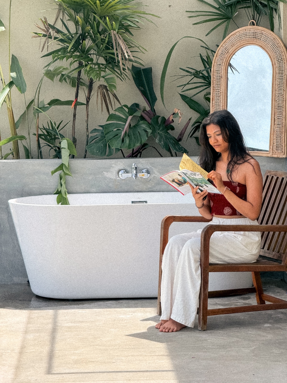 Cool and minimal that's Paolo's Cottage, located in the one acre lush eco-garden of Deep Blue Homestay Rental. Last addition to the Homestay at Deep Blue, the cottage is on the second floor with terrace kitchen corner bathroom bedroom and living. Breakfastserved upon request 5 dollars per person