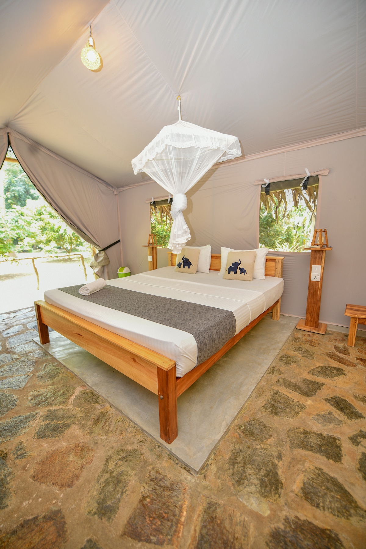 Conveniently located in a tranquil village near Yala National Park, we offer a blend of luxurious amenities and a serene natural setting… with a range of recreational activities, including safari tours, cycling and unforgettable BBQ camping nights Rooms are designed to provide a comfortable camping experience with natural ventilation and is surrounded by a natural bushland. The tents are equipped with cooler/fan, tea/coffee making facilities, and attached bathrooms with toiletries.