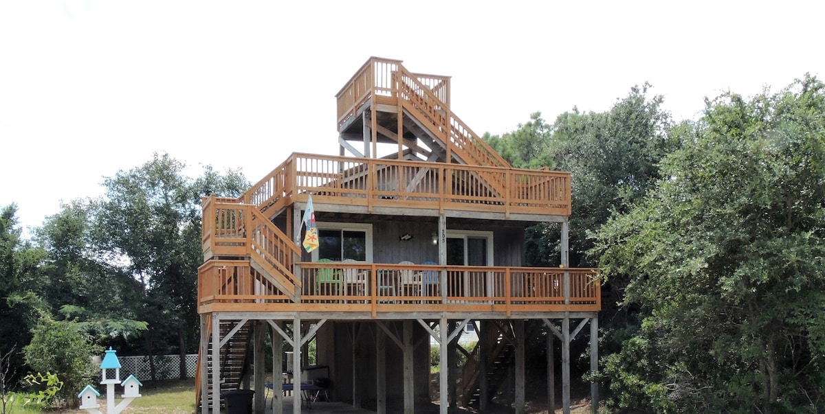 OBX Sharp Stays presents: 'The Avalon Cottage' A 1958 original Outer Banks flat top cottage. This beautiful cottage has been renovated, offering the perfect mix of modern conveniences & true Outer Banks nostalgia. I do have several listings in this neighborhood including next door to this cottage. Centrally located, 2 king beds & rooms with Smart tvs, fully stocked kitchen, large 65” smart tv, excellent WiFi, covered patio, outdoor shower, ping pong, rope swing & new decor. Pet friendly.