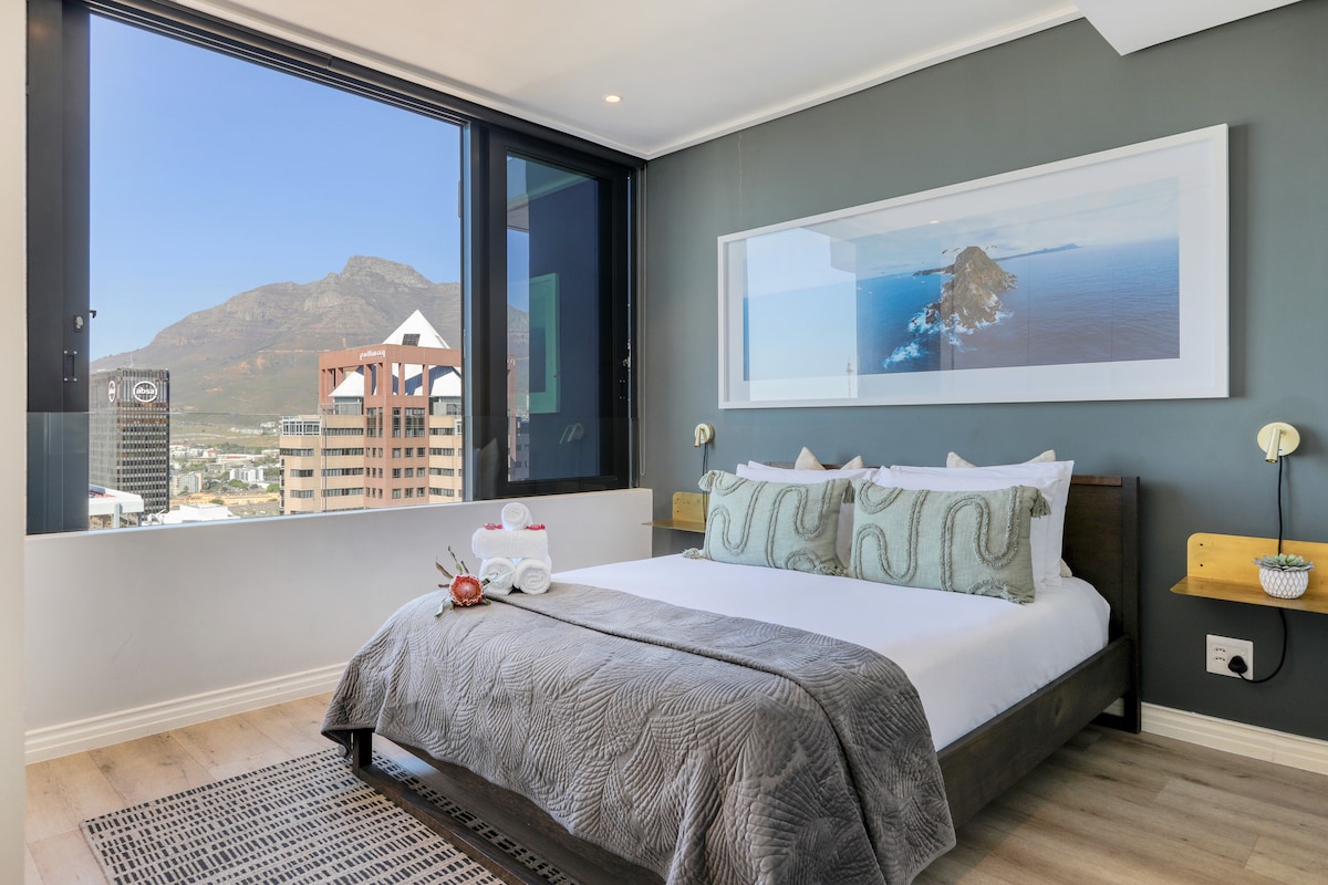 A magical home for exploring Cape Town. This centrally located penthouse is the perfect base for an unforgettable trip; fully furnished with all the comforts you could wish for - an antique bath, XL King-size bed, automated blinds, 55inch Smart TV with Netflix, a fully equipped kitchen, bathroom and wardrobes. Spectacular 270 degrees views of Table Mountain, Lions Head, Signal Hill, Company's Gardens and the idyllic City skyline. From sunset to sunrise you will be spoilt with movie backdrops.