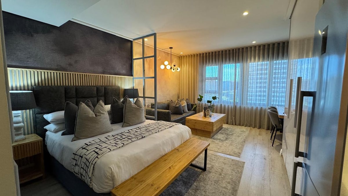 A chic, modern apartment with a big balcony, in the heart of trendy Bree Street, surrounded by top-notch restaurants and just a short walk to all city highlights. Stylishly decorated with all amenities for a super comfortable stay. Perched on the 21st floor, enjoy breathtaking views of the city, Stadium, Robben Island, Signal Hill, and the sparkling sea. Relax on the rooftop terrace with a refreshing drink from the bar. Just a stroll away from the CTICC and the V&A Waterfront. @CapeTown16onBree