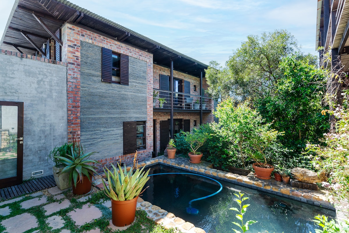 Come cool off in the sparkling pool of this three bedroom, modern chic contemporary villa. Centrally located in Cape Town City Bowl - Higgovale, situated on the slopes of Table Mountain. Clad almost entirely in timber and featuring floor-to-ceiling sliding doors, the indoor-outdoor experience of this home is exceptional. Free high speed fiber WiFi and secure parking for two cars. We have an inverter and Lithium battery to assist during loadshedding. A serene pad in the city. We Welcome you!!