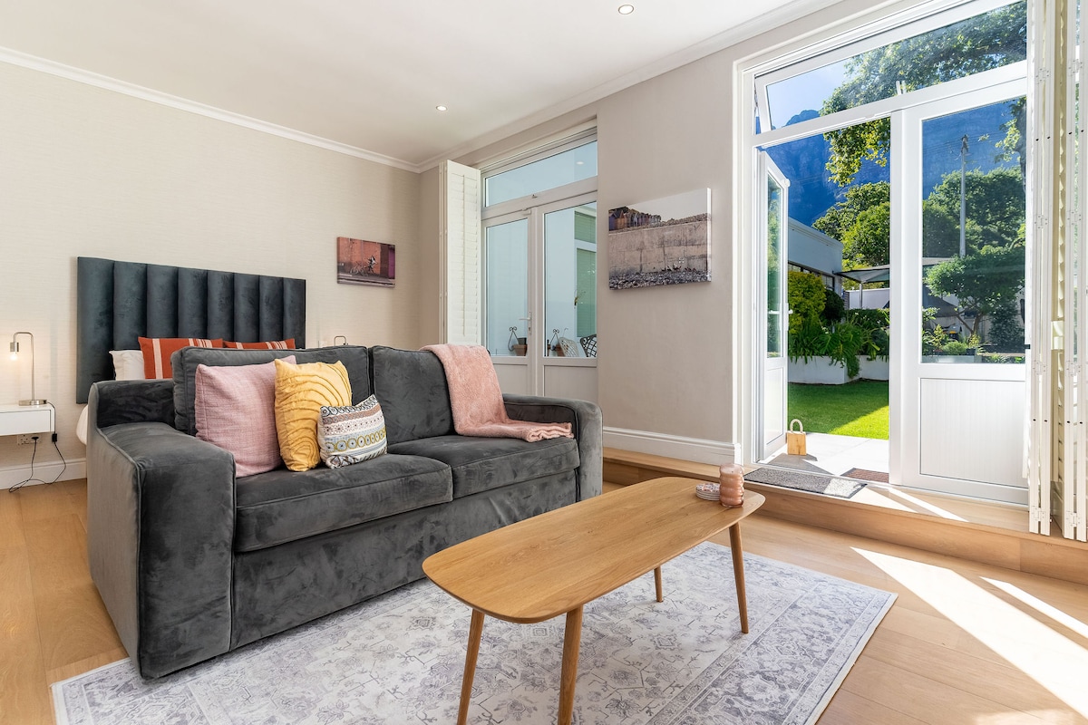 A perfect secure location in the southern suburbs. 5 min walk to the university (UCT) and Kirstenbosch Botanical gardens. Walking distance to restaurants as well as SACS and Westerford High schools. There is an array of shops including a high end wine store close by. A 10 minute drive to the city centre. Mountain walks from your doorstep! Amenities include a Weber barbecue, shady courtyard area to enjoy a glass of wine plus SECURE off street parking .