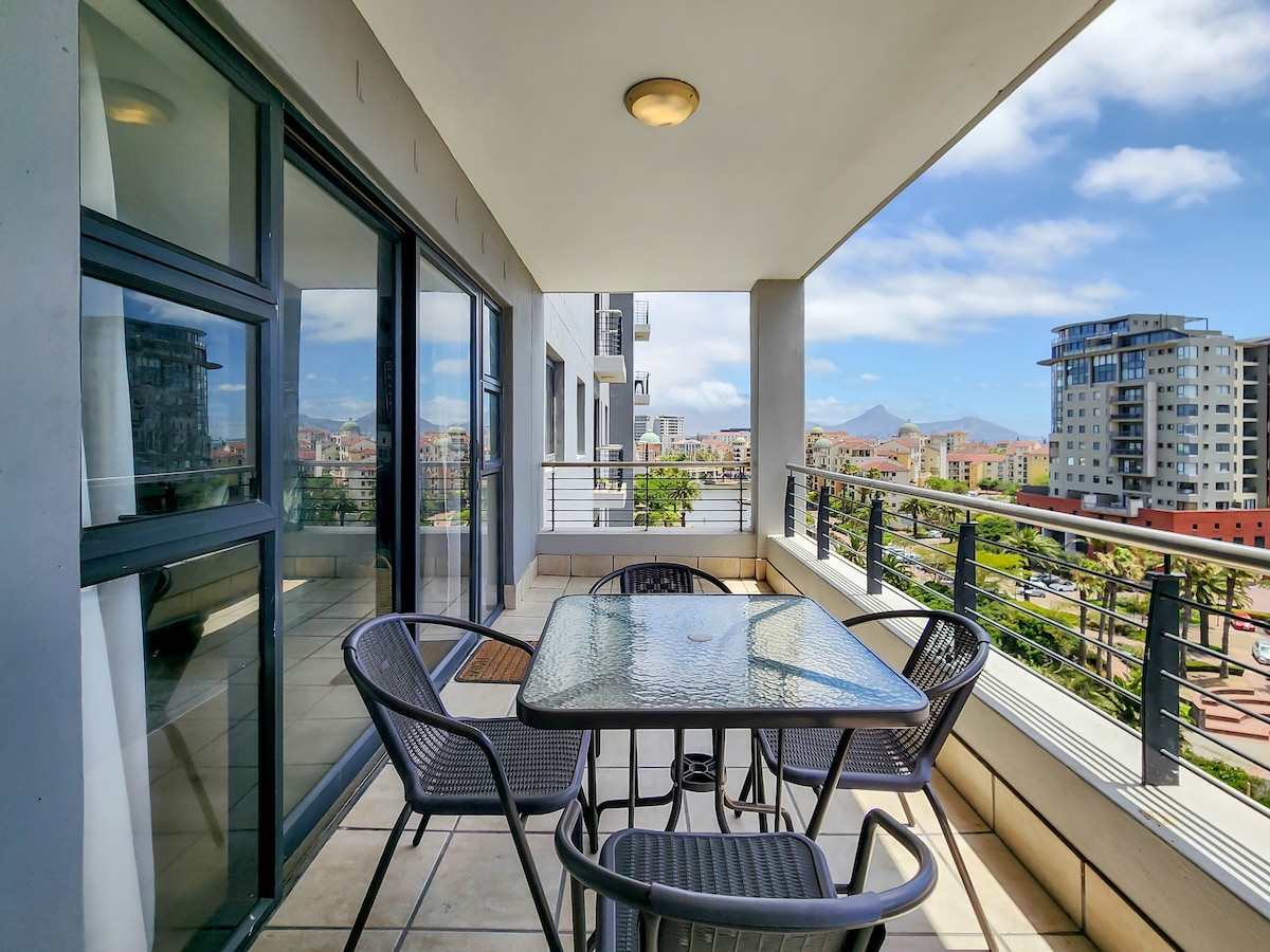 Beautiful apartment overlooking the canal and palm trees. Access to the spa, which comprises an indoor heated pool, a jacuzzi, steam room and sauna, and a fully equipped gym. A five minute walk to Intaka Island, a 16ha wetland and bird sanctuary, a haven for birders, photographers or those who just want to enjoy a quiet stroll through nature. Book a ferry ride which travels on the Grand Canal and around Intaka Island. Explore the beaches, wine farms, city night life and shopping.