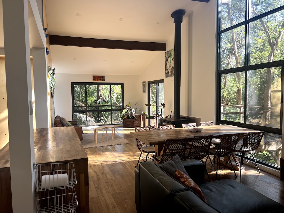 45 minutes from the CBD, Palm Pavilion offers a boutique escape for connecting with loved ones or working in peace. This award-winning, multi-purpose container house is built on the edge of Ku-ring-gai Chase National Park, with a luxury feel and mindful architecture that centers on sustainability, seclusion and tranquility. Offering floor-to-ceiling rainforest views and a full suite of amenities, Palm Pavilion is an oasis for cutting out noise and sharing what matters.