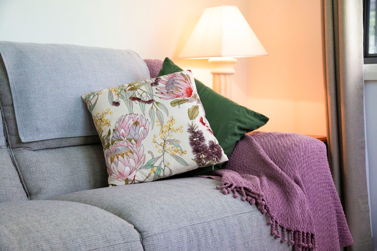 Your self contained, furnished apartment has a separate keyed access, is part of the main architect designed home. Located at the end of the verandah, with a lounge/dining room, kitchenette, separate bedroom and bathroom. *double bed + 1 rollaway single bed (on request) *smart TV *Dyson air cooler/heater/air purifier *A first day welcome breakfast, juice, fruit, bread, eggs *fresh flowers, agapanthus seeds gift Message me for any specific requests eg use of fragrance free cleaning products