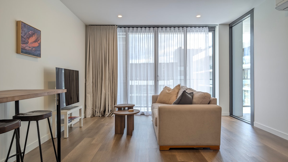 Large Apt Kingston Foreshore Floriade Base Steps to waterfront cafes/bars Cafe/Wood-fired pizza downstairs ☕🍕 Sleeps 4: King Bed + brand new queen sofa bed 79m² open-plan living Wi-Fi EV charger 🔌 Pet-friendly 🐾 Free secure parking. Walk 4 min to the Waterfront Restaurants/Cafes/Bars Your Perfect CBR Base - 5–10 min: Parliament House NGA Nat Museum War Memorial Questacon City CBD Manuka / Oval Braddon CBR airport. Canberra Outlet Centre Drs/Specialists Accom Perfect Floriade base!