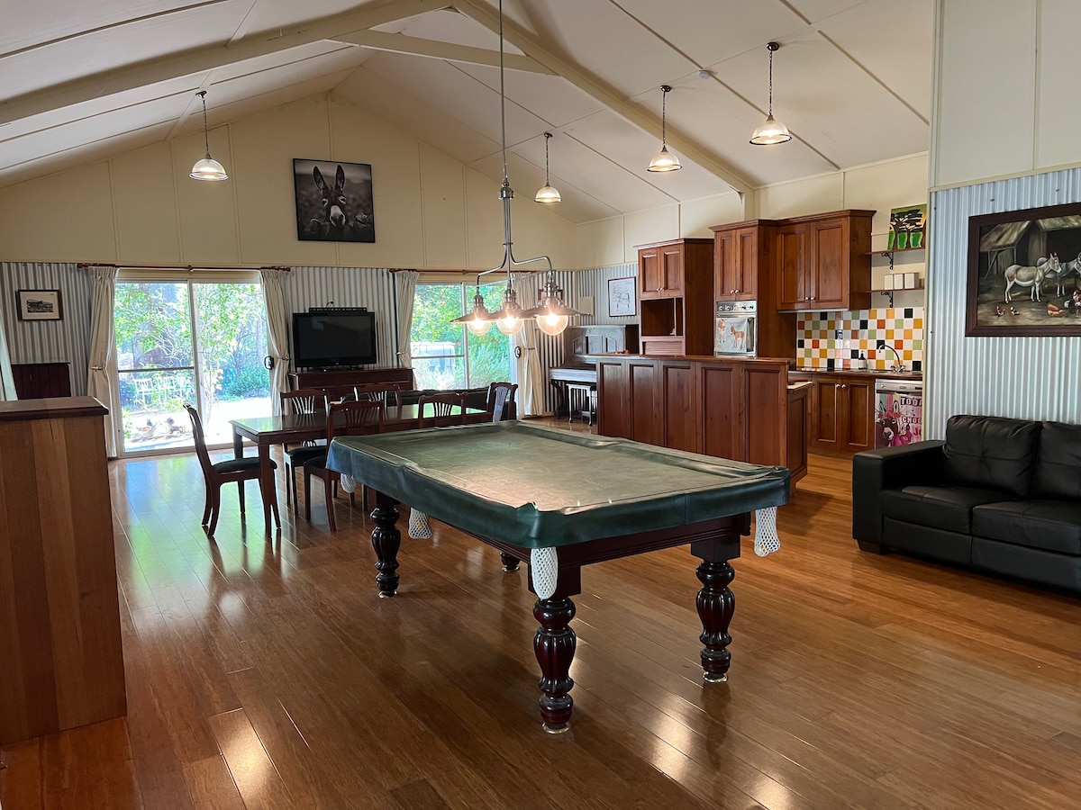 BEAUTIFUL FULLY REFURBISHED ACCOMODATION situated by the river and surrounded by the stunning Tumut Valley Mountains. Our home and now lodge is set on a working sheep and cattle farm. Little River Lodge has 2 bathrooms with master ensuite and double shower, 5 bedrooms to sleep 11 and a fully equipped entertainment area including a full sized pool table, outdoor kitchen, lounge, bar and fire pit. Perfect for family get togethers, girls weekends or just a place to relax. Come and enjoy x