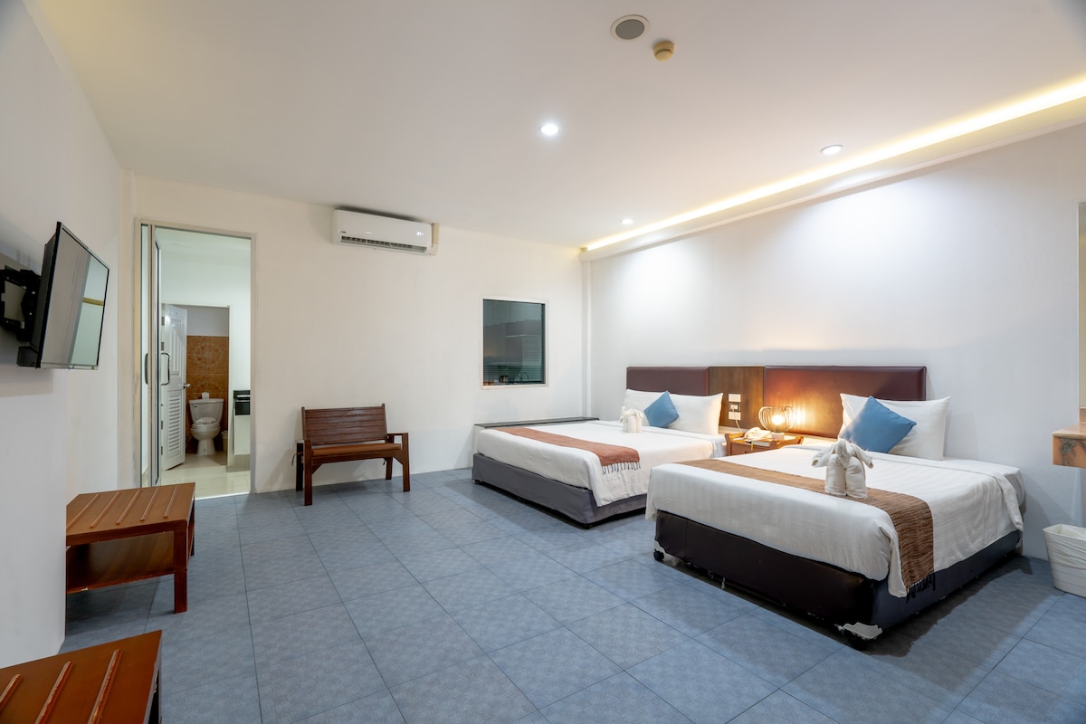 Добро пожаловать в Ваш уютный номер с двумя мягкими постелями и балконом, идеально подходящий для путешествующих семей или одиноких путешественников. Комната оформлена в индивидуальном выдержанном эко-стиле с визуальным акцентом "Волна"* Мы, в отеле "Grand Orlov", стремимся создать для вас уютную и гостеприимную атмосферу и предоставляем лучший сервис, чтобы вы чувствовали себя как дома, даже вдали от дома. Забронируйте этот номер и насладитесь комфортным и незабываемым отдыхом на Пхукете!