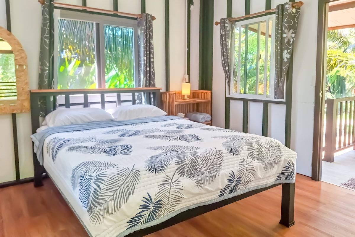 Measured 21ft by 27ft, this one bedroom cottage is the latest addition to our existing Pondok Keladi Guesthouse Langkawi. It also features ensuite bathroom, an open living room and fully-equipped kitchen overlooking the lawn and jungle. Very private. And we have 4 lovely cats roaming around freely on the property from 7am to 5pm.