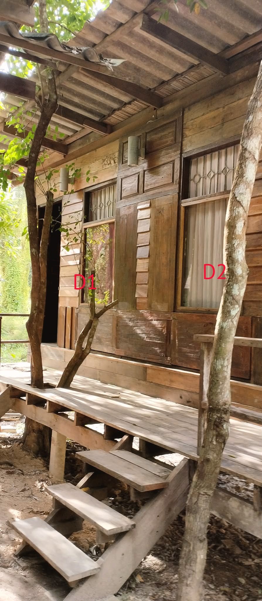 TERATAK DAMAI LANGKAWI, Rustic Rural Retreat are 6 unique self-catering Guesthouse cottages and private home on 1.25 acres of private gated compound surrounded by paddy (rice) fields and verdant gardens in a village near the beach. DAMAI 1 Cosy cottage with private enclosed garden & verandah space. Max 3 adults Not suitable for infant & children below 6 years old. Please take time to read the Descriptions below to see amenities this cottage offers.