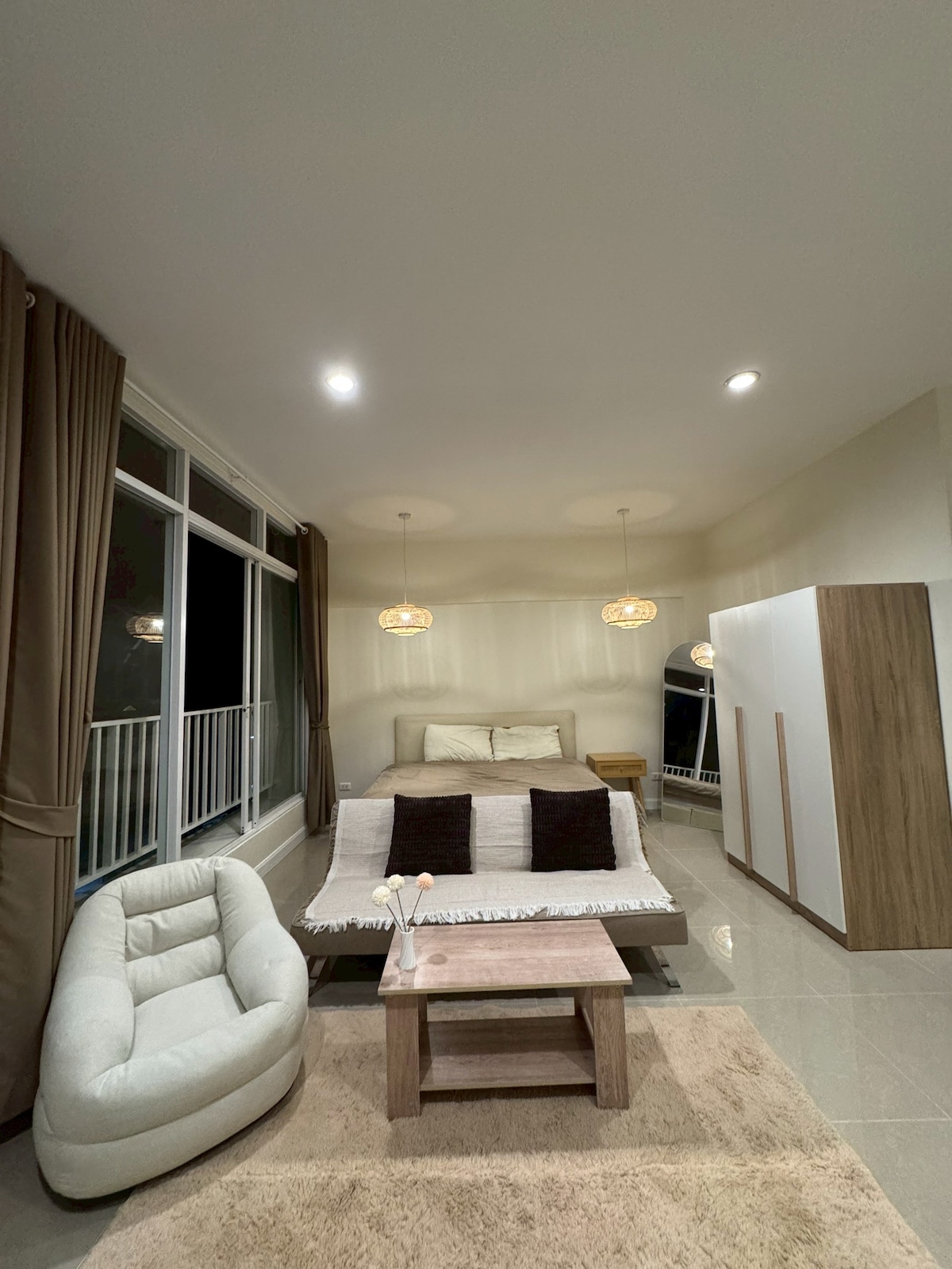 A Cozy home, perfect for one person or a couple to stay. The place is locate in tropical-style residence, Forest Hill. The residence features a large swimming pool, parking and night security, with only 10 mins walk to the beach and Fisherman Village. Please note I moved the plant outside plants the house due to insects..