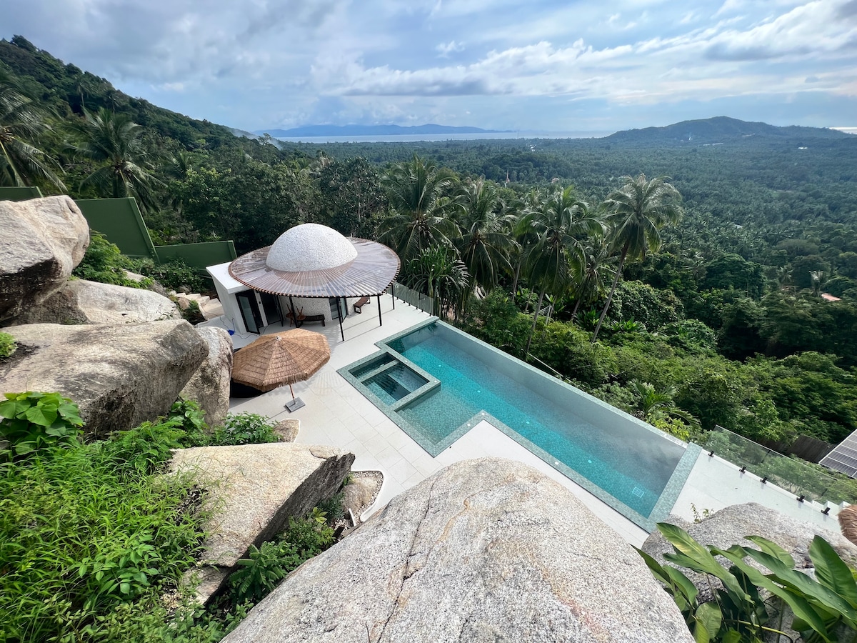 ULLASSA VILLA is a harmonious blend of luxury and natural splendor poised to redefine the hospitality experience. Nestled within nature's embrace, in the hills of Maduawan, spanning over 700m2 with a stunning 180-degree sunset sea view surrounded by nature. Overlooking Baan Tai & Hin Kong beach which offers exceptional views of Samui Island and Angthong Marine Park.