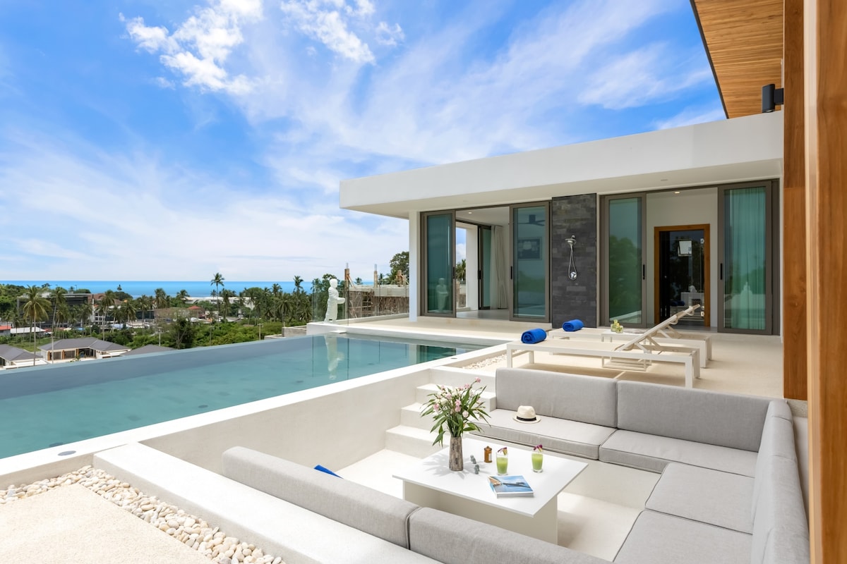 Welcome to "Villa Momo Koh Samui", the peaceful sea-view villa in Samui Island. The villa lies a mere 18 minutes away from the airport. Here you can spend relaxing holidays surrounded by an incredible tropical environment. The villa’s modern design ensures spectacular view. Swim in the infinity pool, unwind in the outdoor lounge, relaxing on the sofa, or wake up daily to the unobstructed sea-view from any of our 3 bedrooms. Water and electricity (up to 90kw daily) are included in the price.