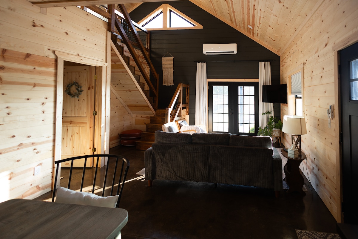 The Chalet in the Orchard was designed with Romance, Luxury, and Relaxation in Mind. The Chalet offers many first class amenties to Enjoy with your Partner. * Movie Theater with Surround Sound * Tonal Digital Home Gym * Dedicated Work Space * Fast Wifi * Sauna * Hot tub * Outdoor TV * Gas and Wood Burning Fire Pit * Private outdoor Seating * Large Soaking Bathtub * Luxury Stone tile Shower * Heated Tile Bathroom Floors * Full Kitchen * Breville Espresso Machine * King Bed