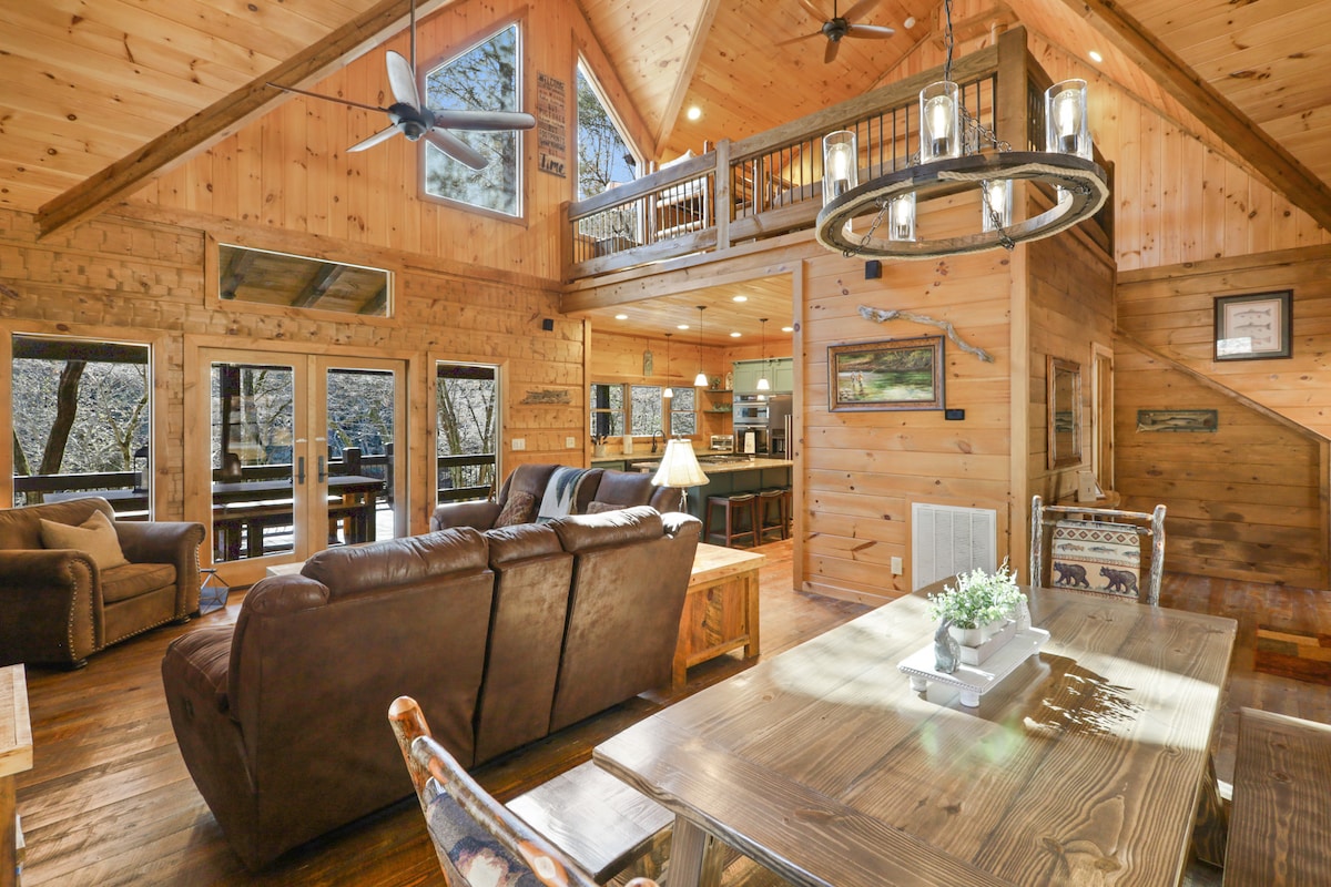 ⭐ Top 1% of Airbnb Homes “One of the best Airbnbs I’ve ever stayed in—and THE nicest in Blue Ridge.” – Scott Wake up to the sound of rushing water. Sip coffee on a swing just feet from the river. End your nights around a fire with the mountains wrapped in silence. TROUT "N" ABOUT is a premier RIVERFRONT CABIN DIRECTLY ON THE TOCCOA RIVER, designed for guests who want both PEACEFUL SECLUSION and UPSCALE COMFORT—just 8.5 MILES FROM DOWNTOWN BLUE RIDGE, with ALL PAVED ACCESS.