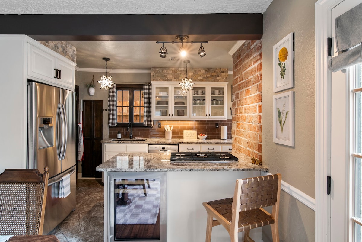 Enjoy a stylish experience at this centrally-located cottage nestled in the middle of downtown Eureka Springs. Enjoy the view of historical downtown from the screened-in patio. Pizza, music, and nightlife directly across the street. Fine dining and shopping just steps away. Enjoy the canopy of trees and artful touches surrounding a large dining table on the private back deck. If you’re looking for the convenience of downtown Eureka Springs, this is it! Electronic waiver signature required.