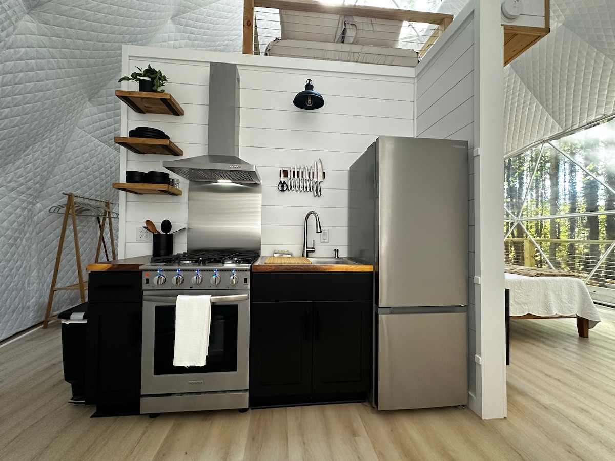 Welcome to our modern sanctuary nestled in the serene woods of Smithville, just a stones throw away from the tranquil waters of Center Hill Lake. Solace Sphere offers a contemporary twist on the classic dome design, featuring a one bedroom layout with a loft, complemented by a rejuvenating waterfall shower and top-of-the-line appliances for your comfort and convenience. We are located 1-1/2 hours from Nashville and 3 miles from Pate’s Ford Marina Bar and Grill. We hope you find your Solace.