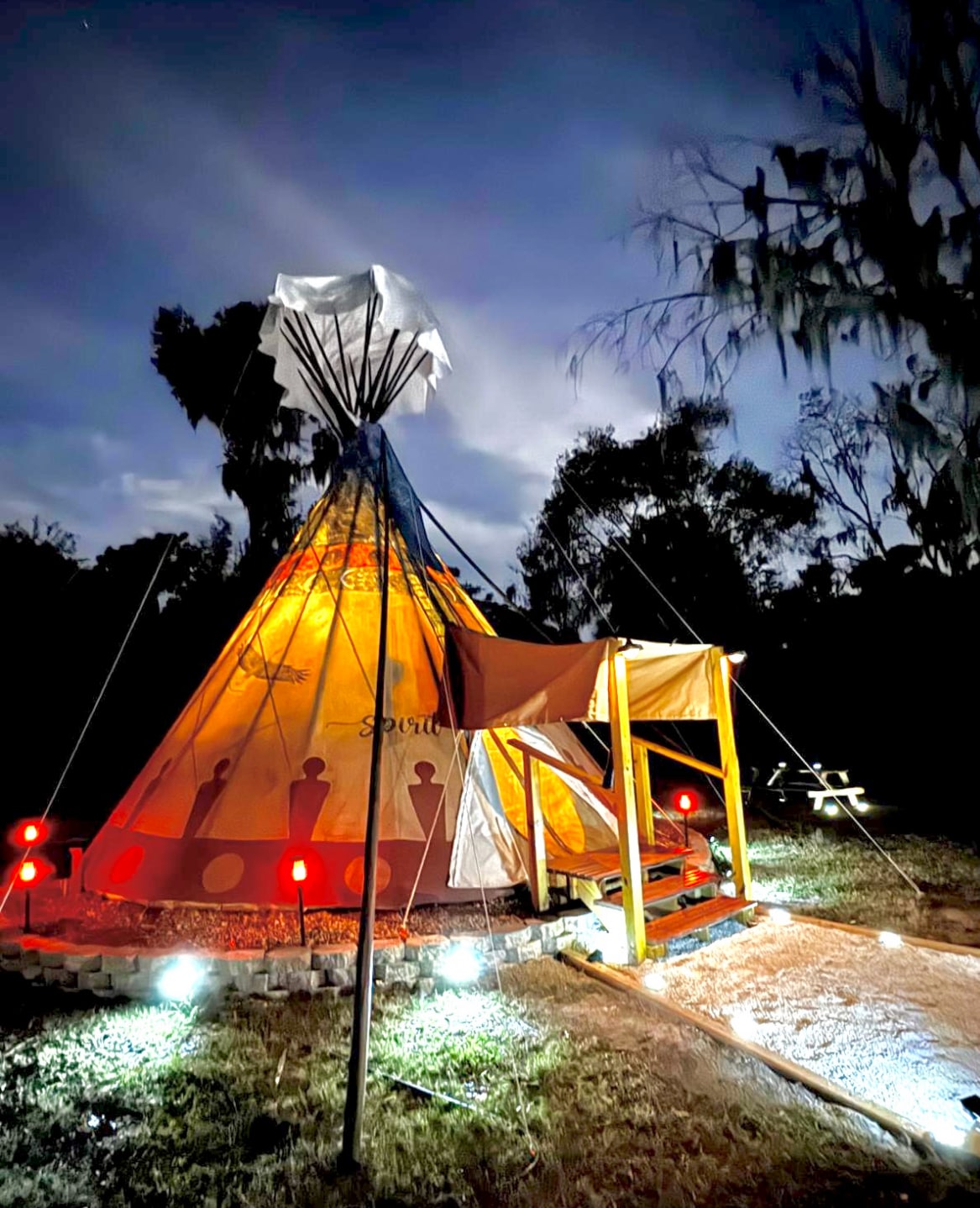 Experience a romantic getaway in our luxurious Lobo Tipi, set in the heart of nature. Inspired by the traditional tipis of nomadic tribes and honoring our brothers and sisters native to the Americas, this glamping retreat offers rustic elegance with modern amenities. Enjoy cozy interiors with air conditioning, a full restroom, and access to communal grills and a fire pit. Unplug, unwind, and create unforgettable memories in this unique and serene escape at El Mistico’s newest project…La Tribu