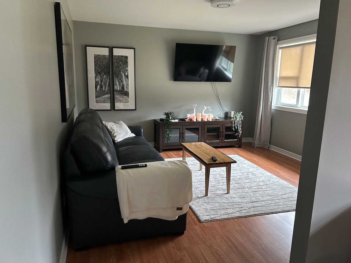 Enjoy a stylish experience at this newly renovated, centrally located lower level unit in Chatham, Miramichi. The primary bedroom has a King size bed and and private ensuite. The second bedroom has a Queen size bed. The backyard is there for you to enjoy some downtime out doors or catch some sun. Steps to the waterfront, shops, restaurants, bakeries, gym, and New Brunswick Community College. A great location for your base while staying in Miramichi. Parking for two vehicles included.