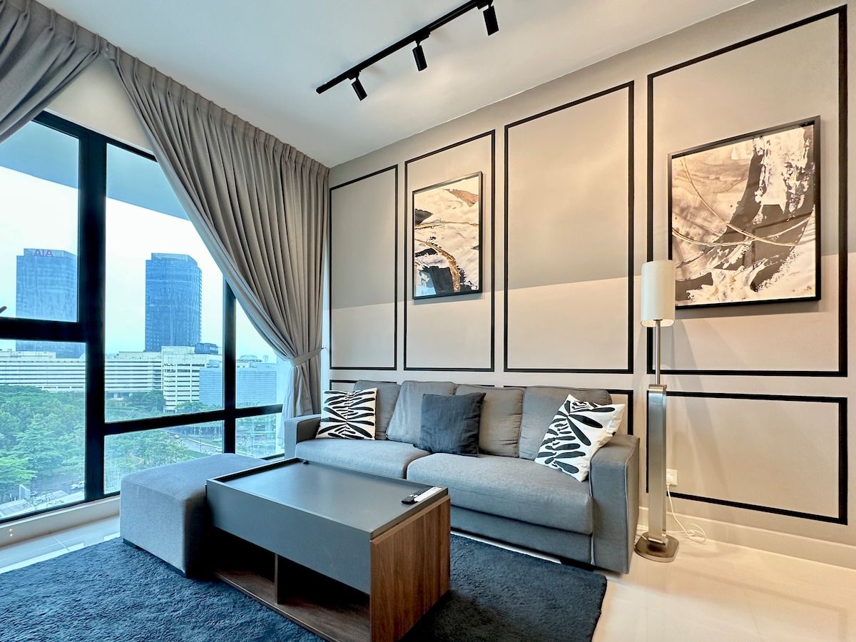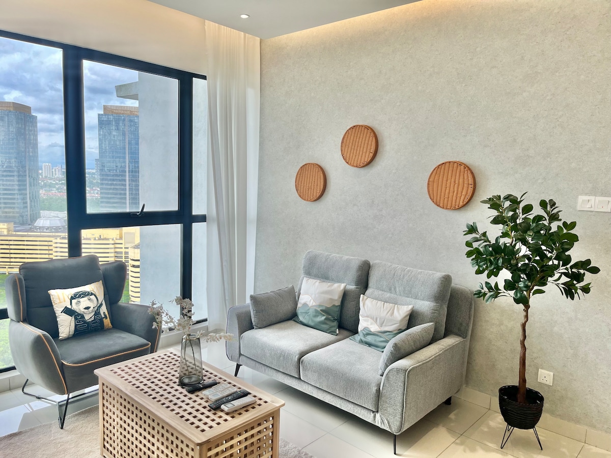 (1+1 BR & 1 bathroom) Contemporary modern and cozy condo in the heart of JB city centre. Suitable for 4pax family, friends and business group. **5mins to CIQ, City Square, KSL, Pelangi, and Larkin **8mins to Mid Valley Southkey, Larkin Sentral and Sentosa **15 mins drive to Paradigm mall, Sutera, Skudai and Mount Austin ✔ 4K SmartTV ✔ High Speed Wi-Fi, working tables with extension plug ✔ Washer ✔ Airconds in every rooms. ✔ Atari console, Mahjong, and Board games. ✔ FREE parking for 1 car