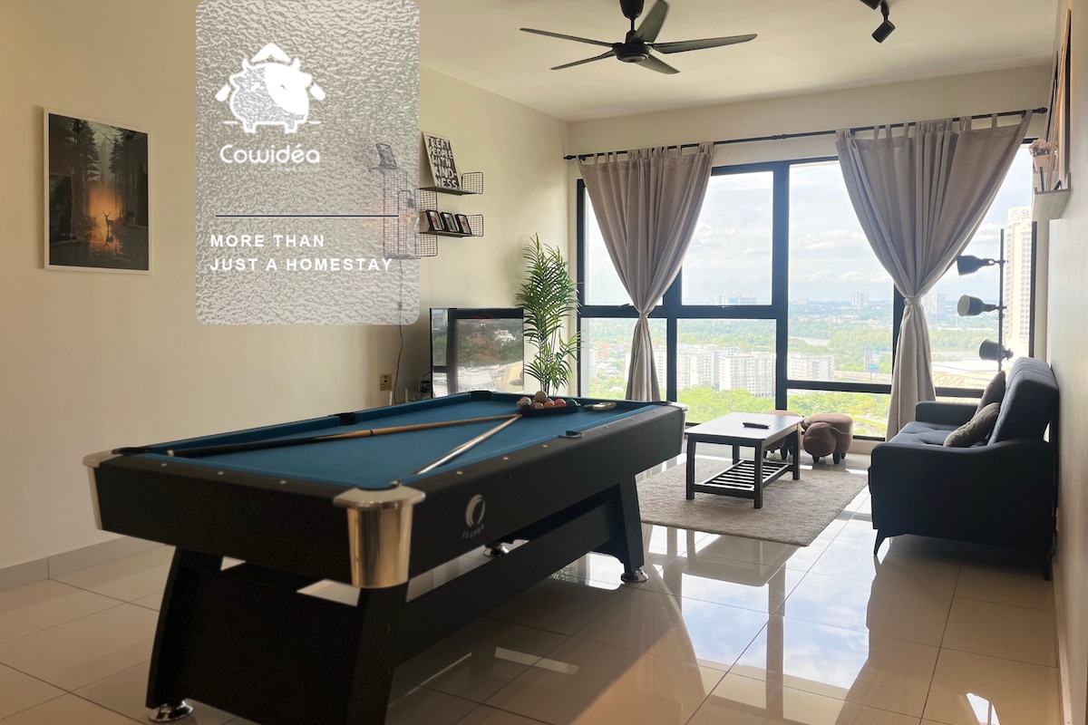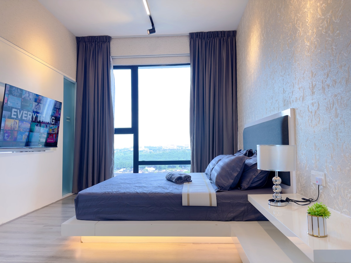 Luxurious spacious 3-Bedrooms unit with Bathtub! Premium quality King & Queen size Beds that guarantee good sleep here with amazing Midvalley Southkey Mall view! Main Highlight! -Private Bathtub -65" Smart TV with YouTube and Netflix apps -Pool Table -Retro Game Console -Drinking water Dispenser Surround with shopping mall & wide range of local tasty food - 2 mins drive to Midvalley Southkey JB - 5 mins to KSL City Mall - 8 mins to City Square Mall & Custom JB
