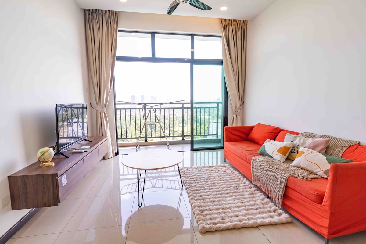 This is a spacious 2Bedroom unit perfectly fit for guests up to 5 pax with total of 1 king size bed 1 queen size bed 1 single bed High floor with high view. 1. Basketball Court 1. Gym Room 2. Function Hall 3. Lounge 4. Library 5. Manicure Shop 6. Mini Theatre 7. BBQ Deck 8. Swimming Pool 9. Sauna 10. Jacuzzi 11. Game room (Pool Table, PS Room, Darts and more) 12. Laundry 13. Mini Market -Sky Garden Guest are not allow to smoke in the room , please smoke at the balcony if needed