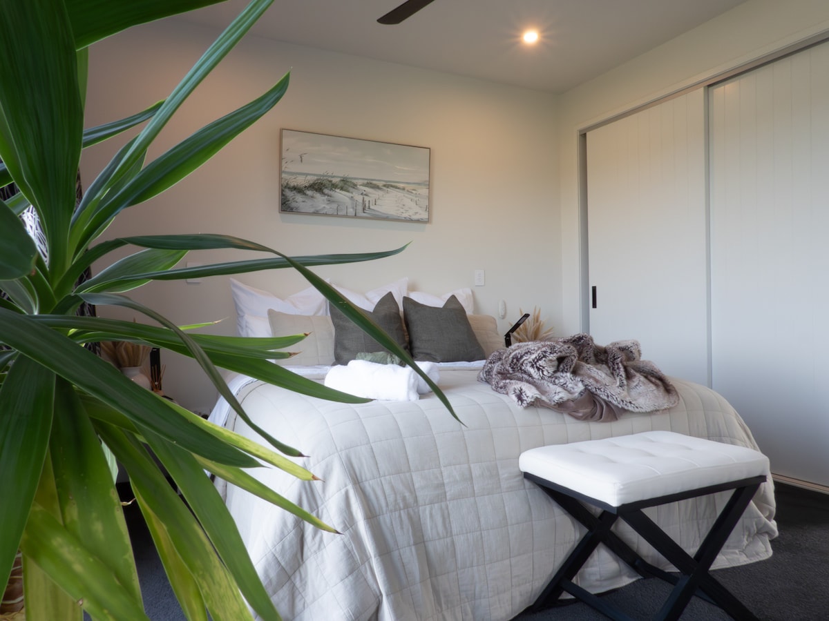 Wake up to homemade goodness in this private, peaceful garden retreat just minutes from Lake Wānaka. Hosted by a foodie, this stay is loved for its comfort, location and generous food offerings. Your spacious super-king room opens onto the garden and trees, creating a calm, boutique-style escape. High-thread-count linen, a cloud-like allergy-free mattress topper, NZ wool carpet, electric blanket in winter, heat pump and modern ensuite. Pre order a platter for your first night to just relax!