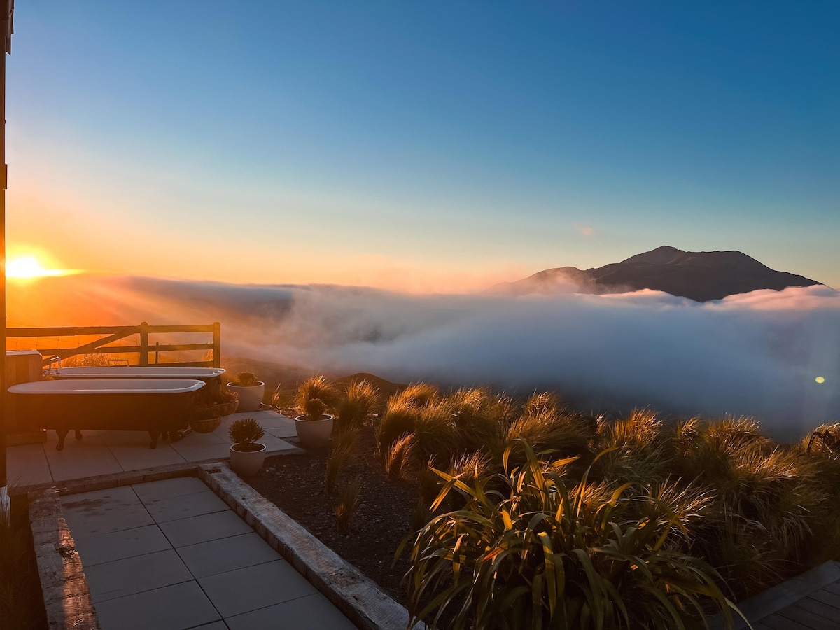 This adorable and very warm winter cabin, with stunning views and spa, is part of our 25-acre property, located behind The Lookout Lodge, at the manager's residence. This rustic, cute cabin has a queen bed, and a separate private bathroom with an outside hot shower house just next to the cabin. There is also a private spa where you can enjoy amazing star gazing as you soak! You’ll love this cabin because of its unique location, awesome shower, stunning scenery, and taste of kiwi farm life.