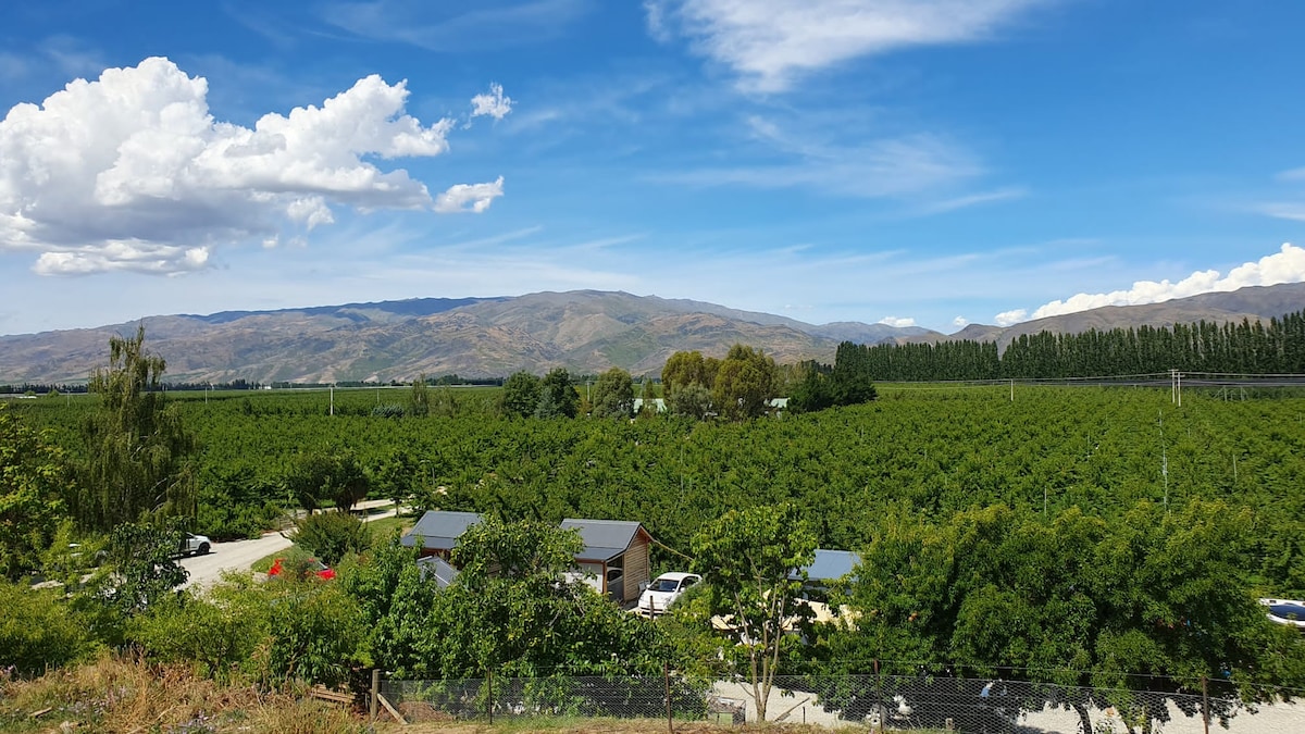 The cabin is a bright, private one bedroom free standing cabin on our property. Full bathroom and kitchenette (microwave, jug, toaster, Nespresso coffee maker, mini fridge etc) sorry no stove. BBQ grill for your use. Stunning views of the mountains in a new neighbourhood. Short 5 minute drive to downtown Wanaka. 5 minute walk to local restaurant/bar. Wifi and Netflix available on Samsung 32 inch TV. Heat pump for heating in winter/cooling in the summer.