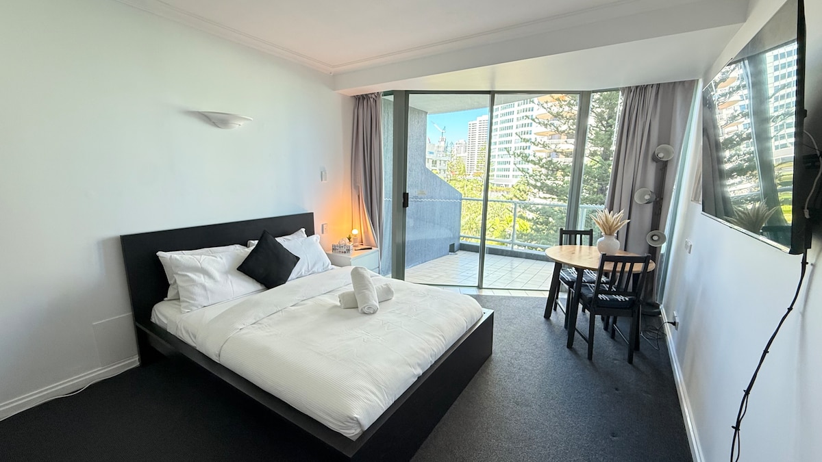 Your level 21 room is in the Mantra on View Motel, 22 View Ave. on the side angled towards the ocean. (The quiet side of the motel, not the Cali beach club side) Centrally located to beach, light rail (100m), shopping, restaurants. The room has a new king-size bed, 65" TV with Netflix and Foxtel. Pause/resume live TV, record programs for viewing later. Microwave, Tea/coffee. Room service has not been charged and is not included. This is a private rental, so any queries please contact us.