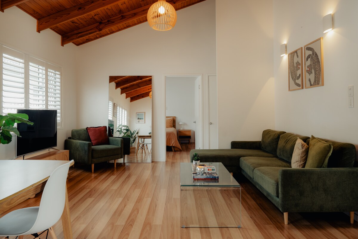 Nestled in the heart of Currumbin Valley, the Acute Abode invites you to leave the world at the door and immerse yourself in complete tranquility. Our cozy Abode is waiting for you with plenty of places to curl up with a book in our indulgent loft queen bed that peers over the living area and out to nature through our colossal windows. Pour yourself a wine, gather around the fire, and surrender to serenity at the Acute Abode. follow us @_acuteabode_