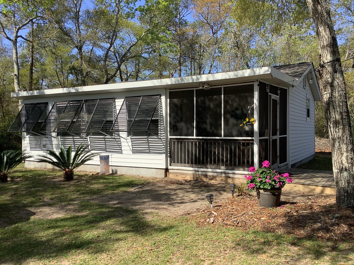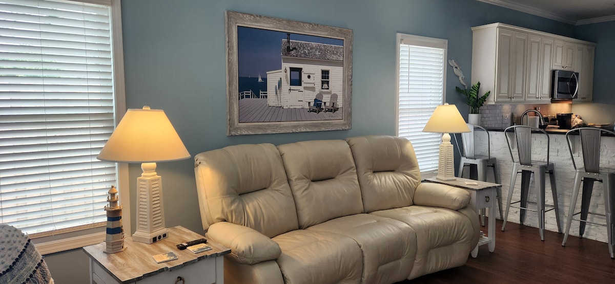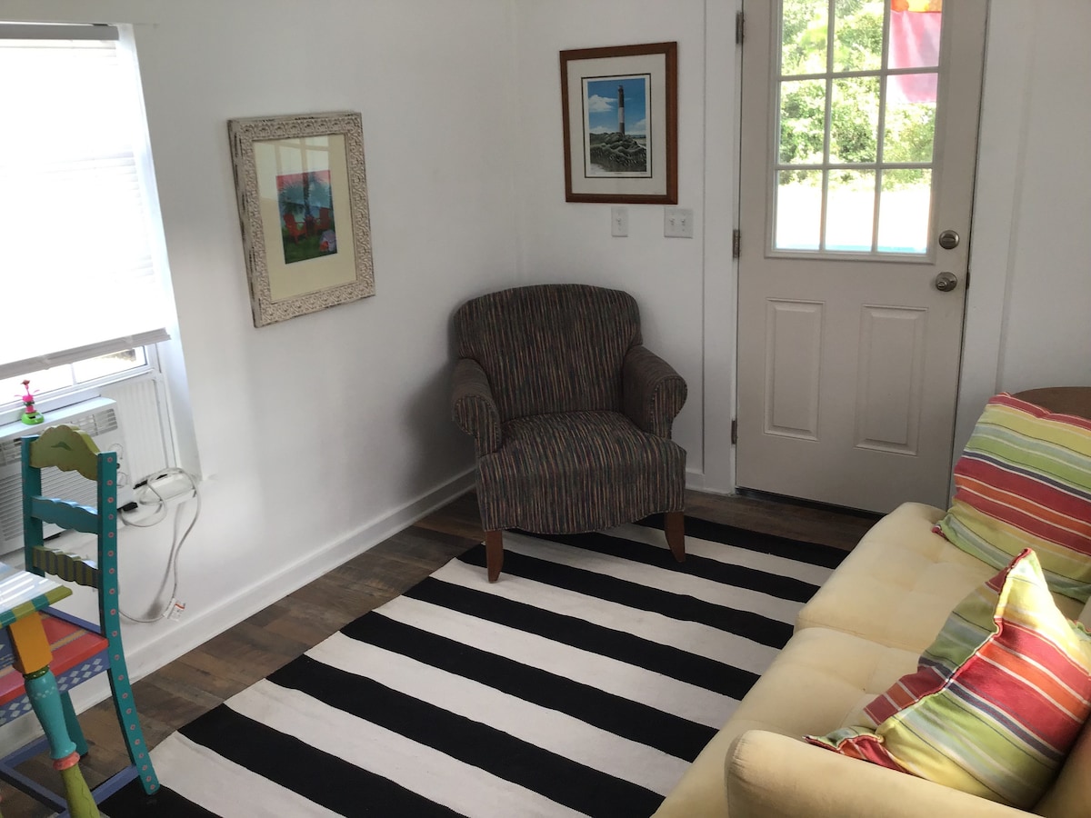 迷人的小屋,步行可至海滩,带门廊和停车位