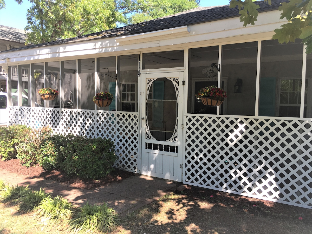 The charming Backdoor Cottage is located in the Historic District of Southport, NC. It's named the Backdoor Cottage because you park and enter through the backdoor into the living space. It is within walking distance of the whole Historic District including the waterfront, restaurants, shops, churches and art galleries. Much of the art work in the cottage was done by local artists. Watch Nicholas Sparks' movie, Safe Haven, if you'd like to see what Southport looks like. It was filmed here.