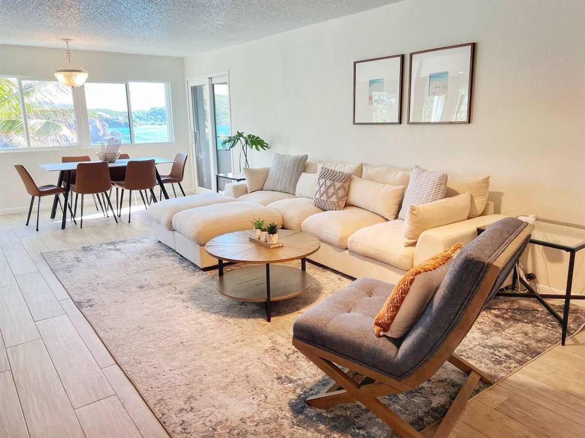 Our fully renovated 1BR/1BA condo is PERFECT for couples, small families or a friends getaway. Enjoy stunning ocean views and the sound of waves from every room or your private balcony. Watch breathtaking sunsets and cool off in one of three crystal-clear pools. Located in a gated community, just steps from the beach, oceanside pool, and seaside dining. Only 10 min to Red Hook (ferries to St. John & BVI) and Havensight, and 15 min from the airport—your perfect island escape! 🌴
